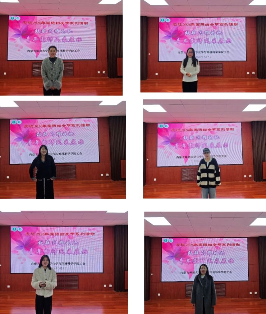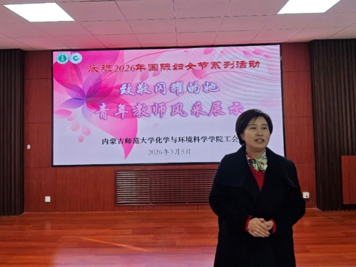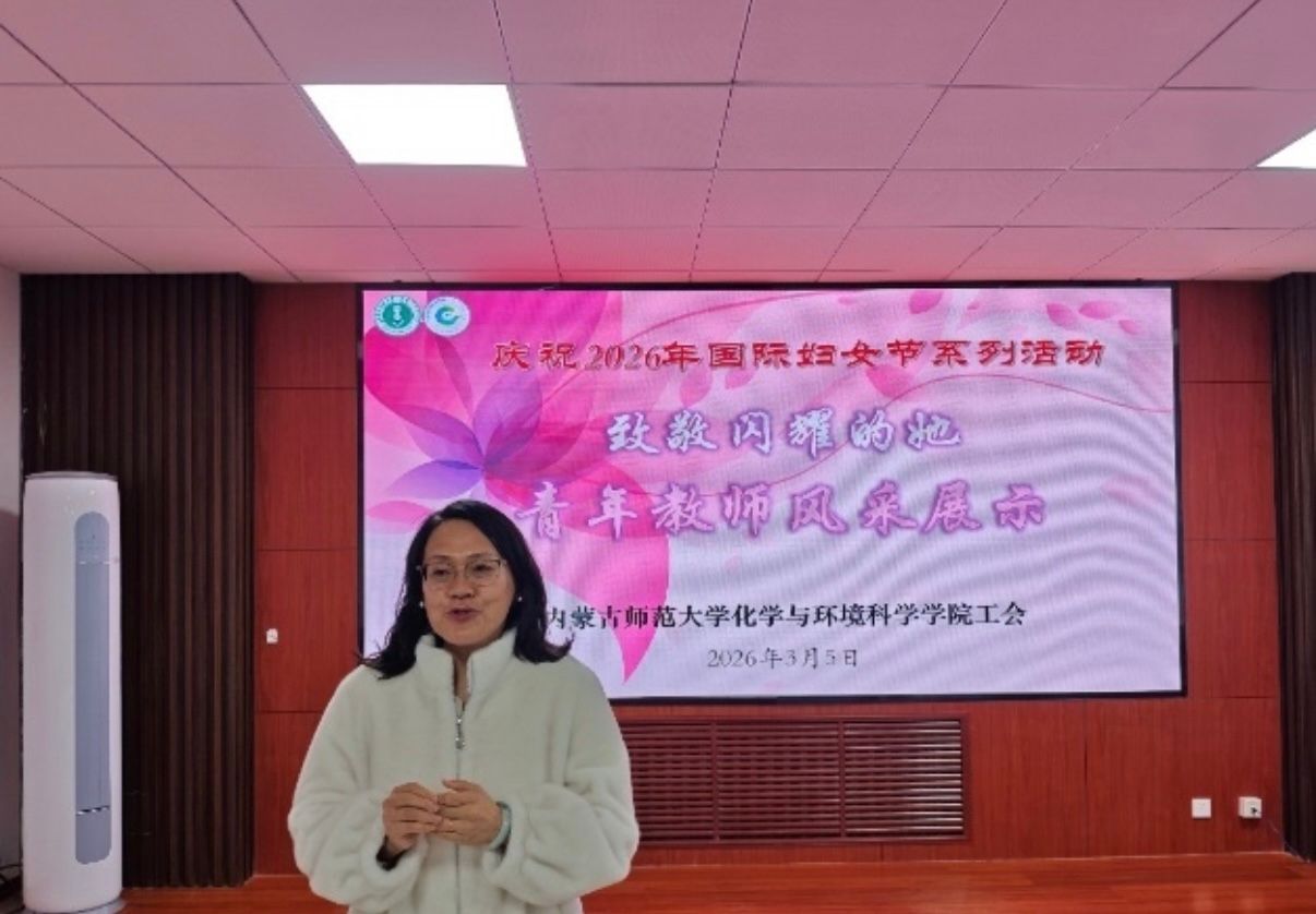 在第116个“三八”国际劳动妇女节来临之际,3月5日下午,化学与环境科学学院工会在赛罕校区聚贤楼213会议室举办“致敬闪耀的她”庆祝2026年“三八”国际妇女节——青年教师风采展示主题活动。学院党委副书记、副院长范磊,副院长焦燕及40余名女教职工参加活动,活动由学院工会委员白朝鲁门主持。